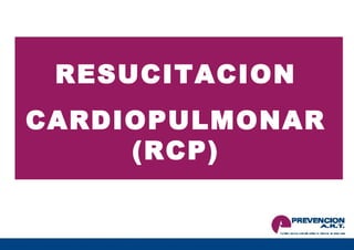 La resucitación cardiopulmonar (RCP) consiste en un conjunto de maniobras para mantener la respiración y circulación hasta la llegada de emergencias médicas. La RCP incluye evaluar la situación de la víctima, activar los servicios de emergencia, colocar a la víctima en posición decúbito supino, y realizar las maniobras de apertura de vías respiratorias, respiración boca a boca, y masaje cardíaco a un ritmo de 100 compresiones por minuto alternando con