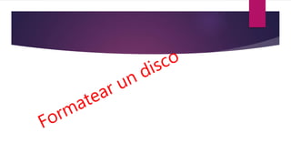 Este documento proporciona instrucciones para realizar varias tareas de mantenimiento de computadoras, incluyendo cómo ejecutar un scandisk, desfragmentar un disco, liberar espacio de almacenamiento, formatear un disco y configurar tareas programadas. Explica los pasos para cada tarea con el fin de ayudar a los usuarios a mantener sus equipos en buen estado y funcionando de manera óptima.