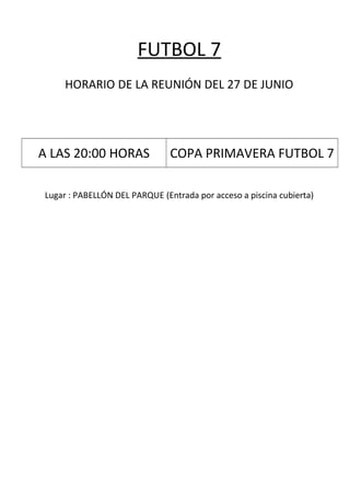 Este documento resume los resultados de los partidos semifinales de la Copa Primavera de Fútbol Aficionado celebrados el 25 de junio. Detalla los emparejamientos de los cuartos de final y las posiciones de cada equipo, así como la hora y lugar de la próxima reunión para determinar el calendario de la final programada para el 27 de junio.
