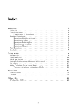 El documento presenta información sobre el humanismo. Define el humanismo como una doctrina o actitud vital basada en una concepción integradora de los valores humanos. Explica que el humanismo surgió en la Italia del siglo XIV como un movimiento cultural que recuperó el antropocentrismo de la cultura grecorromana frente al teocentrismo de la Edad Media. También describe los orígenes etimológicos del término humanismo y menciona algunos tipos como el histórico occidental, cristiano, existencialista y marxista