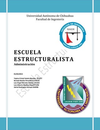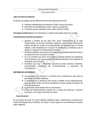 Este documento describe la Escuela Estructuralista de la administración. En 3 oraciones o menos: