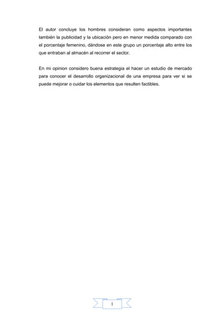 El documento describe un estudio de mercado realizado por la empresa Makrohogar para evaluar sus productos y servicios. La empresa encuestó a clientes para identificar problemas y oportunidades de mejora. El estudio concluyó que los factores más importantes en la decisión de compra son la calidad, precio, atención y diseño. La empresa puede mejorar enfocándose más en estas áreas clave para satisfacer las necesidades de los clientes.