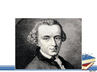 Immanuel Kant (1724-1804) fue un filósofo alemán que buscó sintetizar el racionalismo y el empirismo. En su obra más conocida, Crítica de la Razón Pura, examinó si son posibles los conocimientos a priori independientes de la experiencia y estableció un sistema filosófico basado en el juicio de la razón en lugar de Dios. Kant vivió durante la transición entre el Renacimiento y el movimiento filosófico del siglo XIX e introdujo nuevos métodos de análisis filosófico.