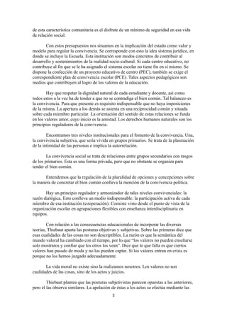 Este documento discute temas relacionados con la convivencia, normas, escuela y valores. Explora las relaciones interpersonales y cómo se forman las costumbres y la moral. También analiza conceptos como la indisciplina, la violencia y el conflicto en el contexto escolar. Finalmente, propone que para entender estos conceptos es importante considerar factores como las emociones, comunicación, percepciones e intereses de los estudiantes.