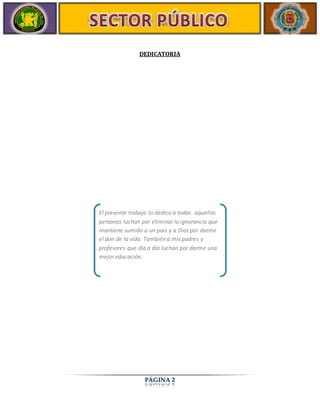Este documento trata sobre la administración financiera del sector público en Perú. Explica conceptos como el sistema nacional de contabilidad, el sistema nacional de tesorería, el presupuesto público, el sistema de abastecimiento, el sistema nacional de inversión pública, el planeamiento estratégico y el personal del sector público. El objetivo general es promover la eficacia, eficiencia y transparencia en el uso y administración de los recursos públicos.