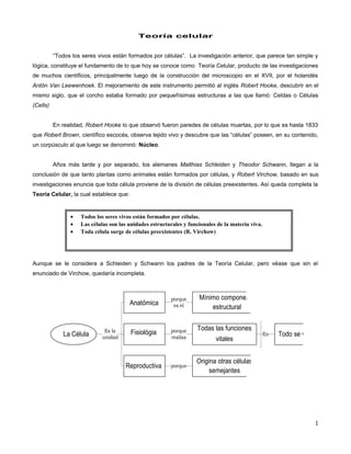 1) Todos los seres vivos están formados por células, las cuales son las unidades estructurales y funcionales de la materia viva.