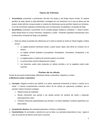 3) Las células pueden ser procariotas u eucariotas, siendo estas últimas aquellas que contienen organelas como el núcleo, mitocondrias y más.
