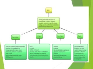 El documento habla sobre la necesidad de acceder, reflexionar y relacionarse con otros a través de objetos, experiencias y relaciones personales. También menciona características de correo electrónico como la bandeja de entrada, redactar, "A", "Cc", "Cco" y asunto. Finalmente, discute el proceso de elaboración y publicación de libros electrónicos que pueden leerse en dispositivos como eBOOKS, tabletas y PCs.