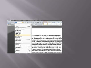 Este documento proporciona instrucciones sobre cómo utilizar las funciones básicas de formato y edición en Microsoft Word. Explica cómo aplicar formatos de texto como negrita, cursiva y subrayado; cambiar el tamaño, color y estilo de fuente; agregar viñetas y tabulaciones; ajustar márgenes y sangría; y insertar tablas. El objetivo es servir como una guía rápida para los usuarios sobre cómo personalizar el diseño y apariencia de documentos en Word.