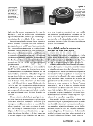 El disco duro es un medio de almacenamiento magnético de alta capacidad utilizado en computadoras para guardar sistemas operativos, aplicaciones y datos. Desde su invención en 1957, los discos duros han evolucionado en tamaño, capacidad y costo, pasando de grandes y costosos a versiones más compactas y accesibles, mientras que su principio de operación permanece constante. Este documento detalla la historia, la estructura física y los componentes clave de un disco duro típico, incluyendo su tecnología de registro y las mejoras en la calidad del almacenamiento.
