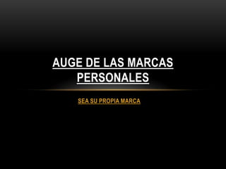 El documento habla sobre la importancia de desarrollar una marca personal para tener éxito en la carrera profesional. Recomienda descubrir tus fortalezas y compartirlas con otros, hacer lo que te haga feliz, y tomar control de tu futuro laboral creando una presencia en redes sociales como Google+, Facebook, LinkedIn, y desarrollando una red de contactos. Además, propone cuatro pasos clave para gestionar tu marca personal: definir tu marca, crear tu marca, dar a conocer tu marca, y mantener tu marca