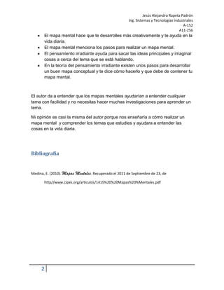 Los mapas mentales sirven para resumir grandes cantidades de información de manera entendible. Permiten jerarquizar ideas, asociar conceptos y mejorar la comprensión y retención. El autor explica que los mapas mentales fueron presentados en un congreso con éxito y son una herramienta útil para estudiantes de cualquier nivel. Además, desarrollan la imaginación y creatividad.