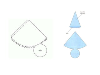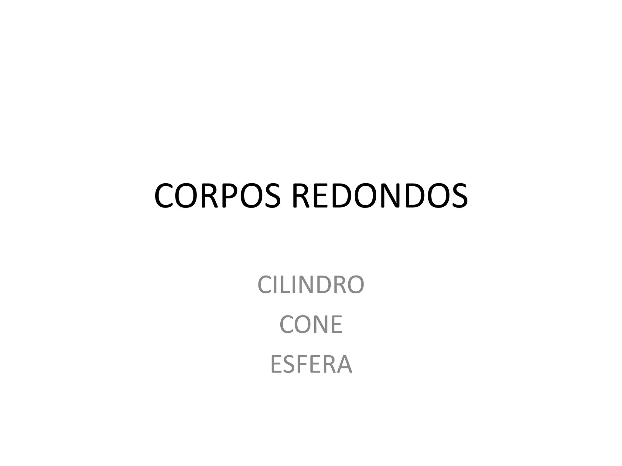 Los cuerpos geométricos mencionados incluyen cilindros, conos, troncos de cono y esferas. El documento lista estos objetos geométricos de forma jerárquica, con cilindros y conos en la parte superior, seguidos de troncos de cono, y esferas en la parte inferior.