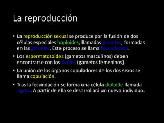 El documento describe la anatomía y fisiología del aparato reproductor masculino y femenino. Explica que los órganos reproductores incluyen las gónadas que producen gametos, los conductos genitales que transportan los gametos, y los órganos copuladores. También describe los procesos de espermatogénesis, ovogénesis, fecundación y respuesta sexual.