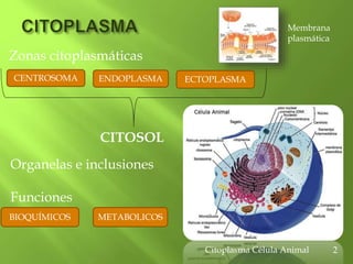 Este documento describe las principales organelas de las células animales, incluyendo el retículo endoplasmático rugoso (RER) y liso (REL), el aparato de Golgi, las mitocondrias y la membrana plasmática. Explica la estructura, función y relaciones de cada organela. El RER participa en la síntesis de proteínas, el REL en el almacenamiento y transporte de lípidos, y las mitocondrias generan energía a través de la respiración celular.