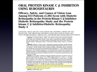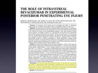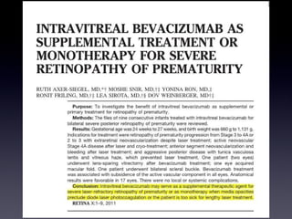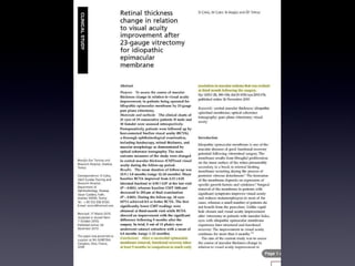 Este documento proporciona enlaces para descargar artículos adicionales sobre una revisión bibliográfica de la retina médica y quirúrgica. También discute protocolos para tratar la degeneración macular neovascular (MNV), incluida la reinyección según sea necesario después de la dosis de carga inicial con revisiones mensuales, y la inyección y extensión de las revisiones cada dos semanas hasta la semana 12 según la actividad de la MNV.