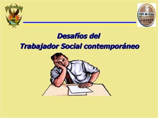 El documento describe varios desafíos que enfrenta la profesión de trabajo social contemporáneo, incluyendo la necesidad de clarificar su compromiso social y entender el contexto cambiante, así como adaptarse a los cambios en el estado y la gestión pública. También señala la importancia de renovar la identidad profesional, fortalecer los fundamentos epistemológicos, y abordar temas como la tecnología y la sustentabilidad social. Finalmente, propone fortalecer la investigación, la práctica, y la formación continua