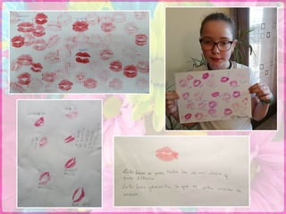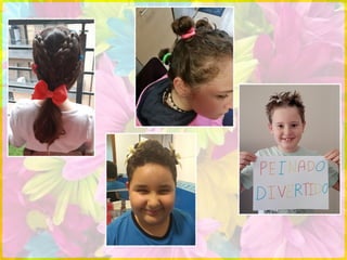 El documento presenta las actividades para la semana del 13 al 17 de abril como parte de la iniciativa "Nos quedamos en casa, aprendemos en casa", incluyendo retos como el Día del Beso, jugar a las películas sin usar las manos para comer y peinados originales, animando a los lectores a ver todas las fotos y superar cada reto la próxima semana.