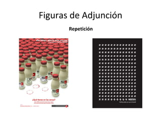 El documento lista diferentes figuras retóricas agrupadas en categorías como adjunción, supresión, sustitución y cambio. Algunas de las figuras mencionadas son rima, comparación, elipse, hipérbole, metáfora, inversión y antítesis.