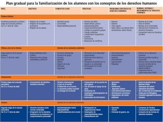 El documento aborda los derechos humanos y su relación con la educación, destacando que la educación debe promover el desarrollo de la personalidad humana y el respeto a las libertades fundamentales. Se enfatiza la necesidad de reformar los sistemas educativos para integrar los derechos humanos y fomentar una cultura de derechos, donde los estudiantes evalúen su comportamiento y el de su comunidad en este contexto. Además, destaca la importancia de la interrelación entre derechos y responsabilidades, así como la evolución de conceptos relacionados con los derechos humanos, como el derecho a un ambiente saludable.