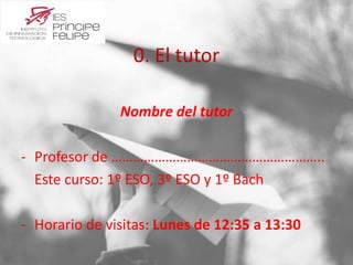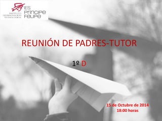 Este documento proporciona información sobre una reunión de padres-tutores. Presenta al equipo directivo del centro, las normas y políticas del colegio, el calendario académico, los programas y actividades extracurriculares disponibles, y las expectativas de los alumnos y padres. El resumen incluye detalles sobre el horario escolar, las evaluaciones, las comunicaciones entre padres y tutores, y las responsabilidades de los estudiantes.