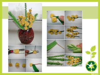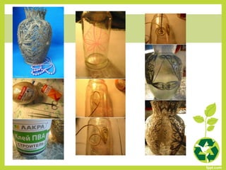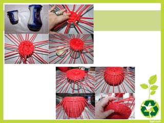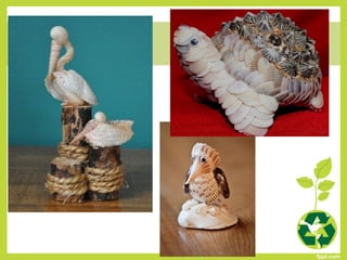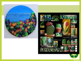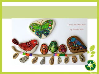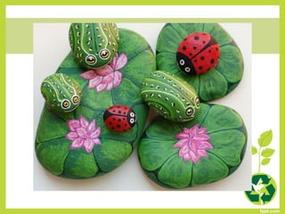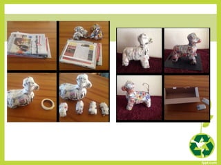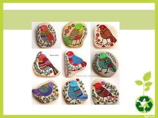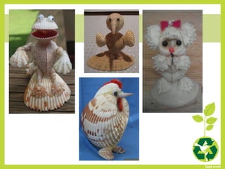 Este documento presenta 86 códigos de proyectos de reutilización que los estudiantes pueden seleccionar para realizar. Los proyectos involucran materiales como piedras, latas, botellas de plástico, periódicos y otros elementos que pueden recolectarse y reutilizarse de manera creativa. El objetivo es enseñar a los estudiantes formas de cuidar el medio ambiente y mantener el equilibrio ecológico a través de la reutilización.