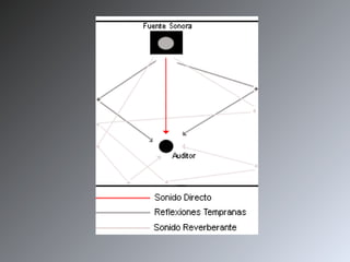 La reverberancia es un efecto natural que ocurre cuando las ondas de sonido rebotan en superficies como paredes, techos y pisos, llegando al oído no solo el sonido directo sino también las reflexiones. En estudios de grabación se intenta eliminar la reverberancia para captar solo el sonido directo, mientras que en teatros se usa para distribuir y potenciar el sonido. Los estudios controlan la reverberancia usando materiales absorbentes de sonido.