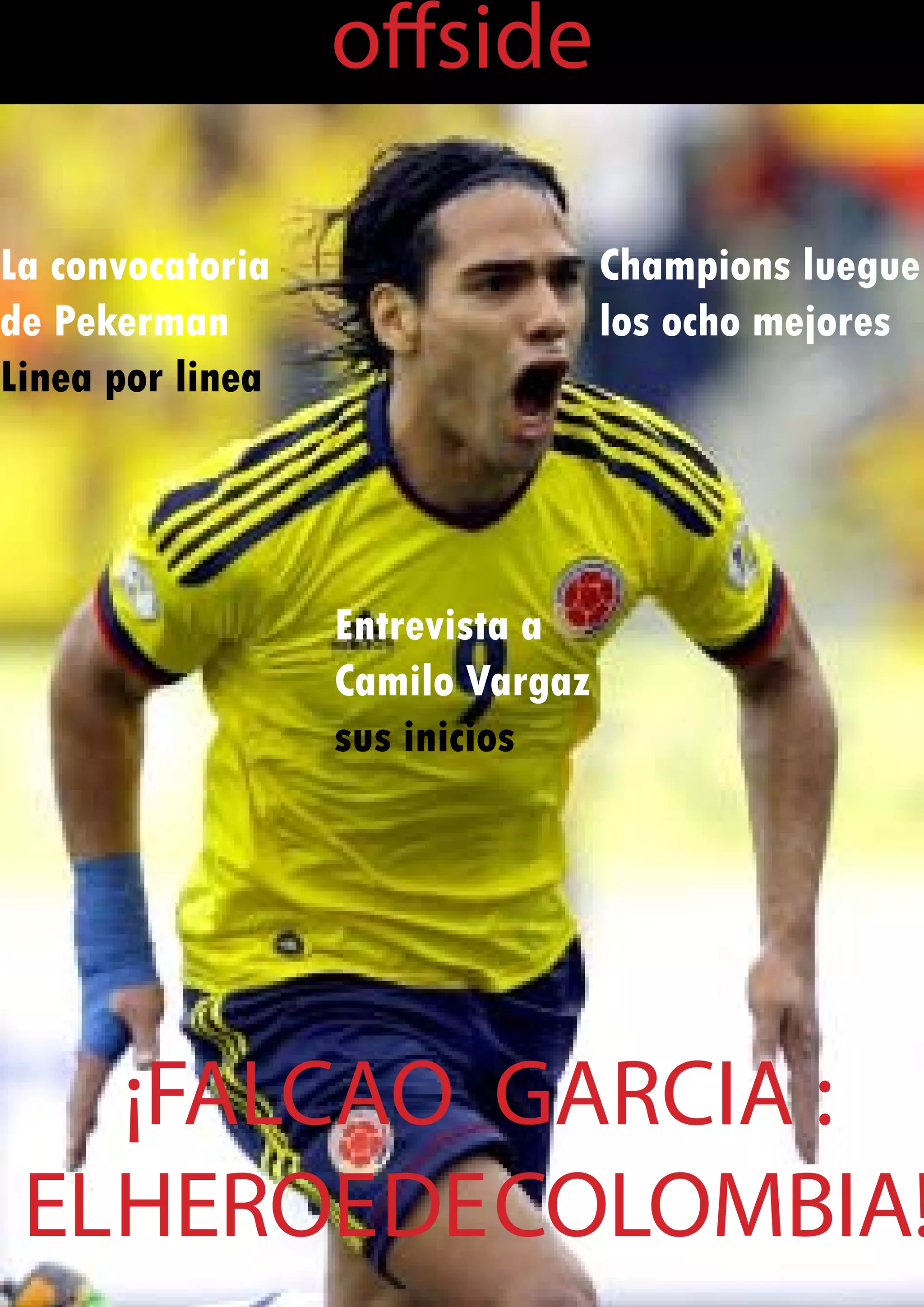 Este documento presenta la portada de una revista deportiva llamada "Offside". La revista tiene como objetivo principal dar información sobre los deportes más destacados a nivel mundial como fútbol, ciclismo y baloncesto, entre otros. También busca contar sobre los juegos olímpicos y mostrar el lado positivo del deporte y la pasión de los atletas.