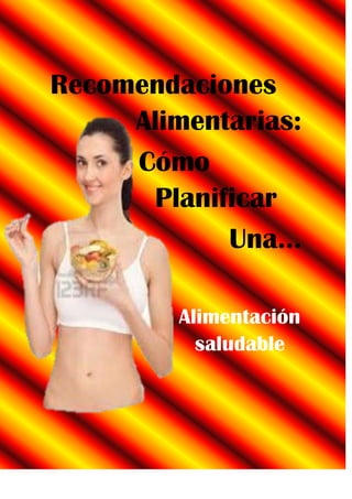 El documento ofrece recomendaciones para planificar una alimentación saludable basada en la pirámide alimentaria. Explica que se debe consumir una amplia variedad de alimentos de los diferentes grupos todos los días, incluyendo frutas, verduras, lácteos, carnes, pescados, legumbres y aceites. También destaca la importancia de realizar 5 comidas al día -desayuno, media mañana, comida, merienda y cena- y ofrece ejemplos de menús equilibrados para cada una.