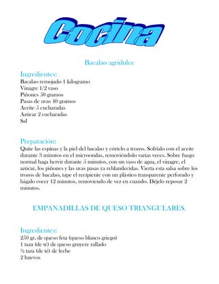 trozos de bacalao, tape el recipiente con un plástico transparente perforado y