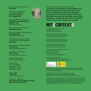 Este documento presenta un número de la revista trimestral Artecontexto. El número 16 incluye un dossier sobre la enseñanza de las artes visuales con artículos de Luis Camnitzer, Armando Montesinos, Justo Pastor Mellado, Sara Diamond y Daniel Canogar. También incluye un artículo de Ibon Aranberri sobre la identidad comunitaria en Portugal, información sobre la situación actual en Portugal, una sección sobre cibercontexto y críticas de exposiciones. El número fue publicado en 2007 y cuenta con la colaboración de varios aut