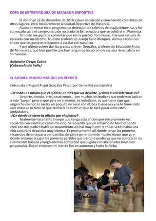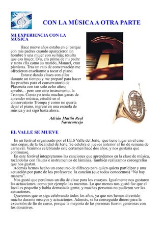 El documento contiene resúmenes de varias actividades extraescolares realizadas por estudiantes del IES Valle del Jerte, incluyendo visitas a Granadilla, donde ayudaron a rehabilitar el pueblo; un viaje a Mallorca; y un viaje a París, donde visitaron lugares emblemáticos como la Torre Eiffel y el Museo del Louvre.