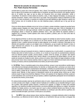 1) En las religiones primitivas no hay fronteras claras entre el mundo espiritual y natural, ni entre la mente y el medio ambiente, lo que crea una atmósfera numinosa alrededor de todo.