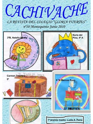 Este documento resume las actividades y eventos destacados del curso escolar 2009-2010 en el Colegio "Gloria Fuertes". Incluye detalles sobre una visita de una ONG, celebraciones como el Día de la Paz, Navidad y Carnaval, y proyectos como Comenius y una campaña de recaudación de fondos para niños en Paraguay. También menciona excursiones, pasatiempos, cuentos, poesías y comentarios de los alumnos sobre su experiencia en el colegio a lo largo de los años.