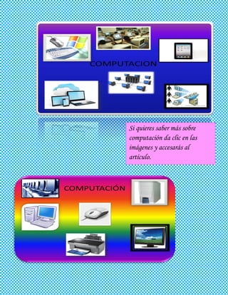 Este documento contiene múltiples secciones sobre temas de computación e informática como hardware, software, procesadores de texto, hojas de cálculo e internet. Cada sección ofrece un hipervínculo a un artículo relacionado al tema. El documento también incluye secciones sobre componentes de una máquina, ensamblado, configuración de dispositivos, mantenimiento preventivo y bases de datos, cada una con un hipervínculo. El contenido fue aportado por el profesor Enrique Torrescano Montiel.