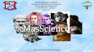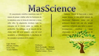 El documento presenta un análisis sobre la importancia del conocimiento científico en la educación y la enseñanza de conceptos y métodos científicos, destacando figuras históricas como Albert Einstein, Isaac Newton y Aristóteles. Además, incluye una introducción sobre la revista 'masscience', destinada a difundir investigaciones y temas científicos de relevancia. Se abordan también aspectos de la vida y contribuciones de varios matemáticos y científicos a lo largo de la historia.