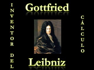 El documento presenta información sobre Gottfried Leibniz, matemático alemán que desarrolló el cálculo infinitesimal independientemente de Isaac Newton. Leibniz nació en Alemania en 1646 y se graduó de la Universidad de Altdorf, donde luego se desempeñó como profesor. En 1684 publicó sus investigaciones sobre el cálculo diferencial e integral. Más tarde, surgió una disputa entre Leibniz y Newton sobre quién había inventado el cálculo.