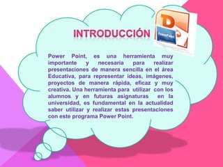 El documento describe varias herramientas tecnológicas útiles para la educación como PowerPoint, rutinas de pensamiento, visualización del pensamiento y Wordle. También discute conceptos como aprendizaje, metacognición y URL. La autora concluye que el curso ha sido útil para aprender estas herramientas que son necesarias para la práctica pedagógica actual.