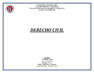 Este documento describe la historia y los principios fundamentales del derecho civil. Explica que el derecho civil venezolano se basa en el derecho civil francés y pasa a describir las etapas del derecho civil como la etapa romana, medieval y la recepción del derecho romano. También resume los antecedentes históricos del derecho civil venezolano y explica conceptos clave como las fuentes del derecho, el derecho positivo y el derecho sustantivo.