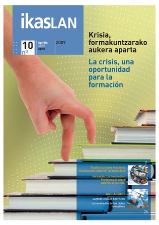 Este documento presenta una serie de noticias breves sobre eventos y proyectos relacionados con la Formación Profesional en el País Vasco. En primer lugar, se informa sobre la colaboración de la Fundación Albiazul con una cooperativa formada en el instituto de Mendizabala. Luego, se describe la participación de tres equipos del instituto de Zumaya en una competición de simulación empresarial. Por último, se anuncia que alumnos del ciclo de Sistemas de Regulación Automática del instituto Miguel Altuna ganaron un concurso promov