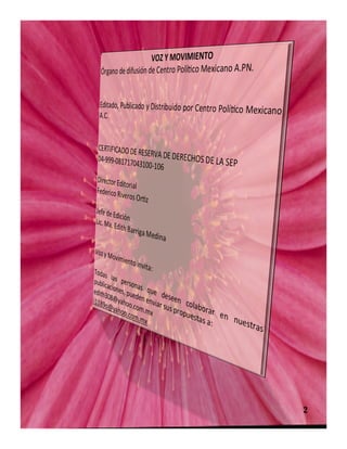 Este documento resume el número 151 de marzo de 2012 de la revista "Voz y Movimiento" del Centro Político Mexicano. Incluye artículos sobre el Día Internacional de la Mujer, la distinción entre Estado y Gobierno, y la segunda parte de un artículo sobre la pobreza en México y posibles soluciones.