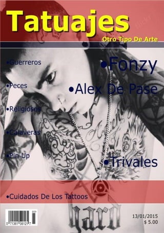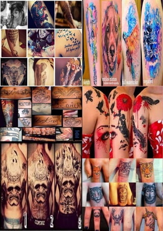 El documento resume la historia y significados de los tatuajes a través del tiempo y en diferentes culturas. Los tatuajes se originaron hace miles de años y tenían significados espirituales o de castigo dependiendo de la cultura. Hoy en día, los tatuajes se han vuelto populares como una forma de arte y expresión personal, aunque algunas personas tatuadas todavía enfrentan discriminación.