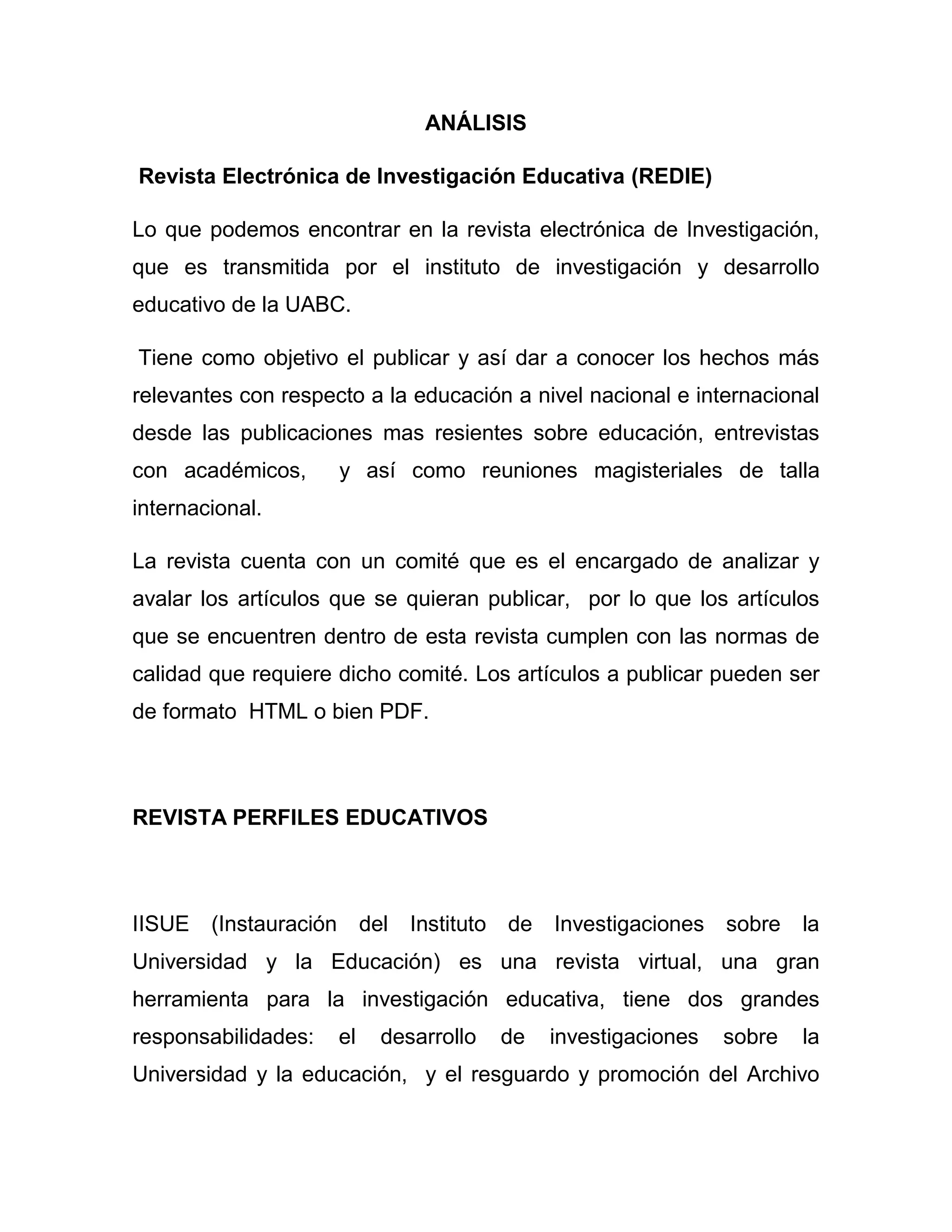 La revista electrónica de Investigación Educativa (REDIE) publica los hechos más relevantes sobre educación a nivel nacional e internacional, incluyendo artículos académicos, entrevistas y reportes de conferencias. Un comité revisa los artículos propuestos para publicación para garantizar que cumplan con los estándares de calidad. Los artículos pueden publicarse en formato HTML o PDF.
