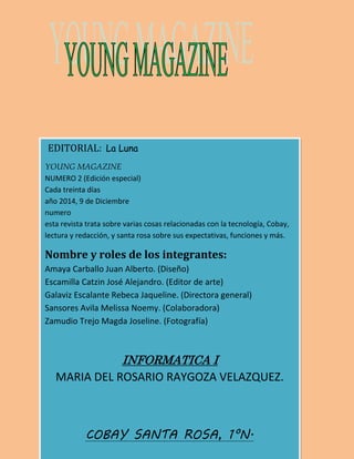 Este documento proporciona información sobre varios temas relacionados con la tecnología, el Colegio de Bachilleres del Estado de Yucatán (COBAY), la lectura y redacción, y la colonia Santa Rosa. Incluye secciones sobre el esquema de la computadora, los sistemas operativos, los virus y antivirus, y las tecnologías de la información y comunicación. También cubre temas como la coordinación académica de COBAY, las actividades extracurriculares, capacitación y el servicio de cafetería.