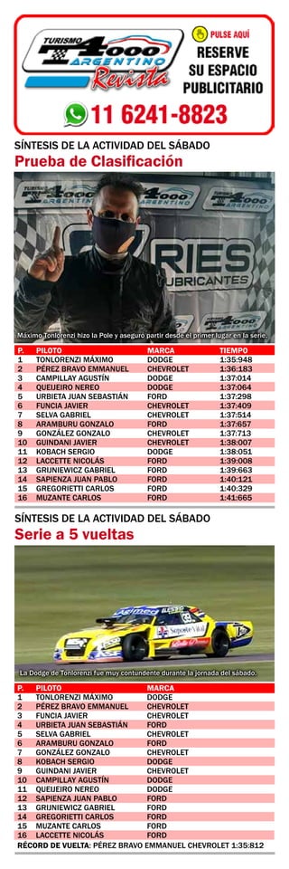 Máximo Tonlorenzi ganó de punta a punta la séptima fecha del Turismo 4000 Argentino disputada en La Plata. Este fue el magnífico regreso de Tonlorenzi a la categoría luego de dos años de ausencia, logrando la pole, victoria en la serie y en la final. Emmanuel Pérez Bravo y Javier Funcia completaron el podio pero Pérez Bravo continúa liderando el campeonato.