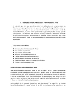 Este documento trata sobre varios temas relacionados con la seguridad informática y la medicina. Brevemente describe los conceptos de robo informático, fraude, hackers, crackers y sniffers. Luego detalla los 10 virus más famosos de la historia y las ventajas y desventajas de redes sociales como Facebook, Twitter y YouTube. Por último, explica cómo la informática se ha aplicado a la medicina moderna para mejorar las operaciones con pacientes y la fabricación de medicamentos.