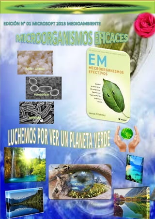 El documento trata sobre la Tecnología EM, que consiste en una combinación de microorganismos como bacterias fototróficas, levaduras y bacterias de ácido láctico. Estos microorganismos ayudan a mejorar la salud del suelo y las plantas al secretar sustancias beneficiosas. La Tecnología EM se puede aplicar directamente al suelo o a través de productos derivados para mejorar la agricultura y el medio ambiente de manera barata y segura.
