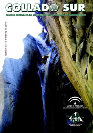 El documento describe la colaboración entre la Federación Andaluza de Montañismo y la Consejería de Medio Ambiente de la Junta de Andalucía para promover el montañismo responsable y la conservación de los espacios naturales. Se han establecido convenios formales y se realizan reuniones de coordinación periódicas. Ambas entidades también colaboran en la organización de seminarios sobre espacios naturales protegidos y actividades de montaña. El objetivo es fomentar el uso público de la naturaleza de forma sostenible.