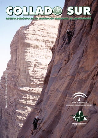 El documento habla sobre la creación de un Área de Juventud y Promoción en la Federación Andaluza de Montañismo (FAM) y la invitación a Andrés Gil Pérez para dirigir dicha área. Gil Pérez acepta el reto y se presenta a los montañeros, explicando su intención de trabajar con un equipo para desarrollar actividades de formación para la juventud montañera. También invita a aquellos interesados a formar parte del equipo.
