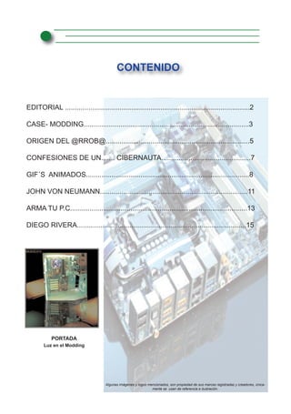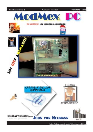 Este documento presenta información sobre varios temas relacionados con la tecnología y la historia. Brevemente describe el origen de los GIF animados, cómo se crean utilizando una secuencia de imágenes, y algunos programas populares para editarlos. También proporciona detalles sobre el origen del símbolo arroba y su uso actual en correos electrónicos y redes sociales. Por último, brinda una introducción al científico John von Neumann y su contribución a las ciencias de la computación.